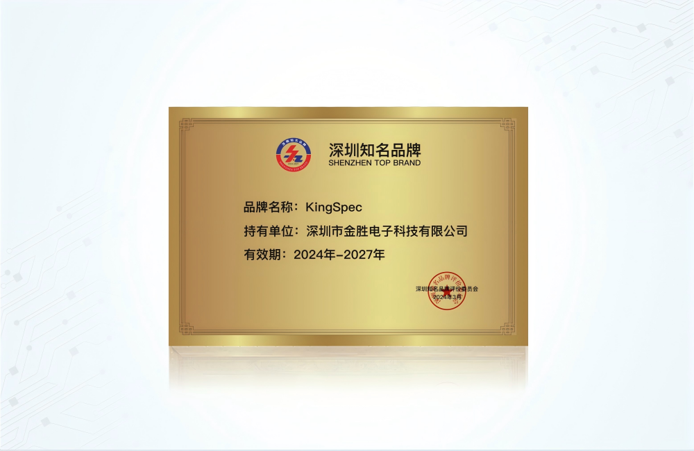 “KingSpec”榮獲第二十一屆“深圳知名品牌”稱號(hào)及“灣區(qū)知名品牌”